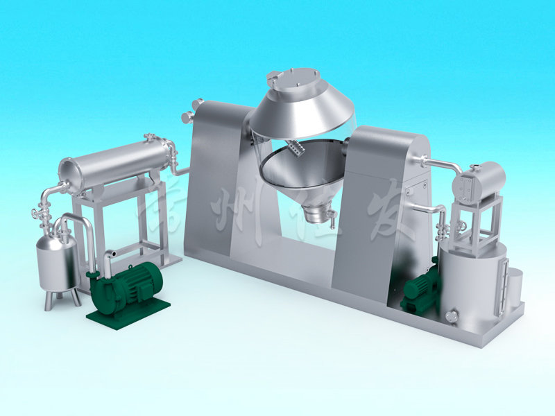 This machine transfers powder or granular materials into a double cone container through vacuum transportation or manual feeding. As the container continues to rotate, the materials undergo complex im...